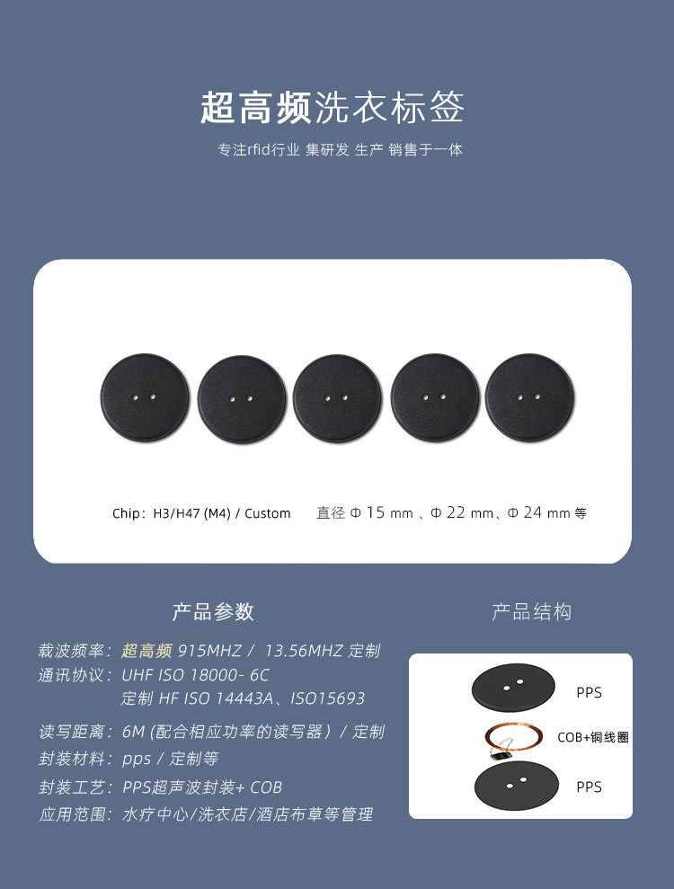 商品型号:PPS纽扣水洗rfid标签
